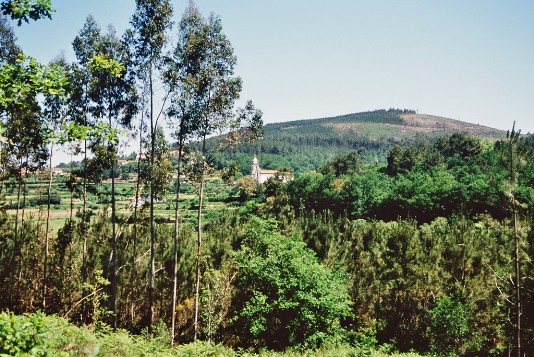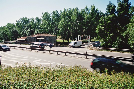 Pfingstsonntag 2006: Wie üblich breche ich ziemlich früh auf. Die Etappe wird etwa mittellang (ca. 24 km) und relativ flach. Nach zum Teil landschaftlich sehr schönen Abschnitten komme ich sehr früh in Caldas de Reis an und lande mitten in einem Fahrradrennen. Ich kann irgendwie die Zuschauer nicht verstehen, die wer weiß wie lange bei brütender Hitze ausharren, um dann für drei Sekunden eine vorbeirasende Horde an Radrennfahrern zu sehen. Die Zuschauer halten mich wahrscheinlich für genauso verrückt, weil ich bei glühender Hitze mit Riesenrucksack plus Fotoausrüstung zu Fuß unterwegs bin.